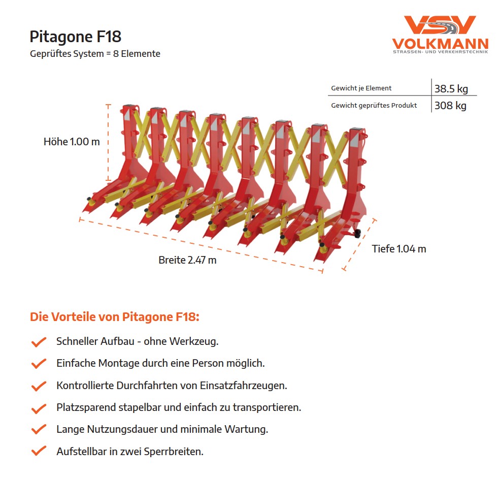Mittlerweile gibt es ja die Technische Richtlinie „Mobile Fahrzeugsperren“ und viele der danach geprüften und zertifizierten Produkte werden eingesetzt. So auch in Leipzig, wo die Stadt die PITAGONE F18 der Volkmann Strassen- und Verkehrstechnik angeschafft hat. Das Problem der Durchfahrt bleibt. Was geschieht nun heuer: Jeweils zwei Mitarbeiter schieben im Minutentakt die mobilen Systeme im 90 Grad-Winkel hin und her. Nicht nur ein Kraftaufwand: 308 kg müssen erst einmal bewegt werden. Auch das Verkanten in der Schiene bzw. auf der Straße führt dazu, dass keines der Systeme gemäß Prüfunterlagen (8 Elemente = 1 System) zum Einsatz kommen.
